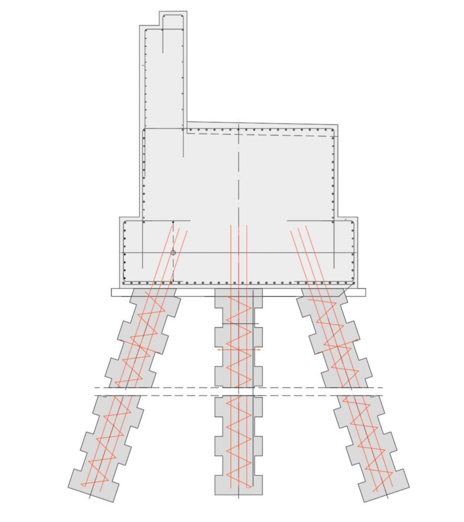 Thanks to the open concrete system, reinforcement in an inclined pile can be placed cleanly through the drilling string, perfectly centred and under the correct angle.