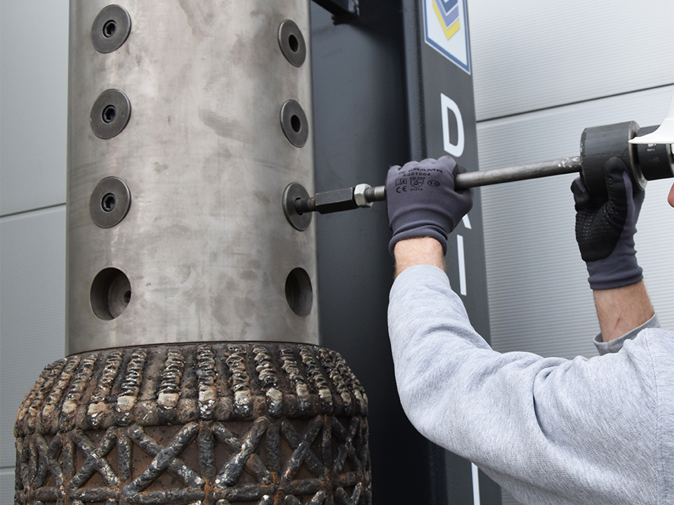 The Olivier coupling has been specially developed for making soil-displacing piles and is available in three sizes. Due to the specific round design with 16 plugs, this coupling is easy to install and can always be disconnected without any problems, even in the most extreme conditions. Because the transport of long drill pipes is becoming increasingly problematic, the Olivier couplings allow several short pipes to be connected to each other, so that long piles can still be drilled.